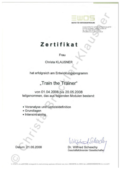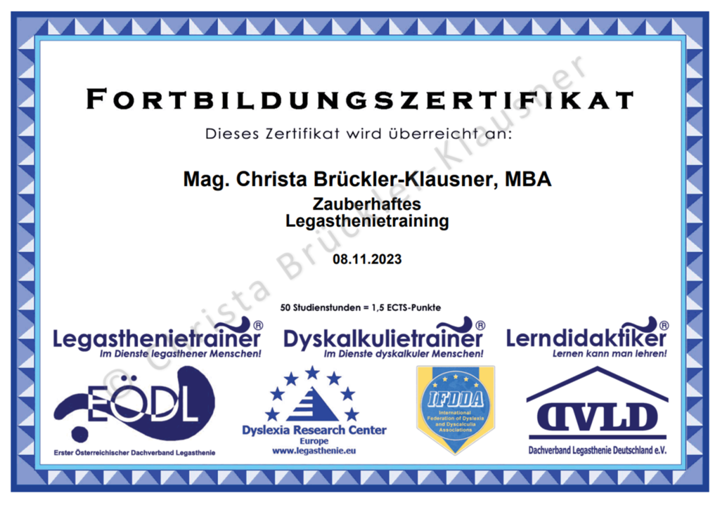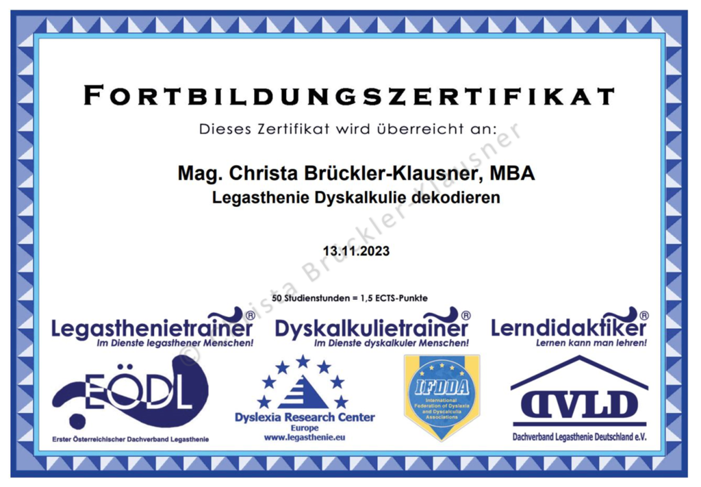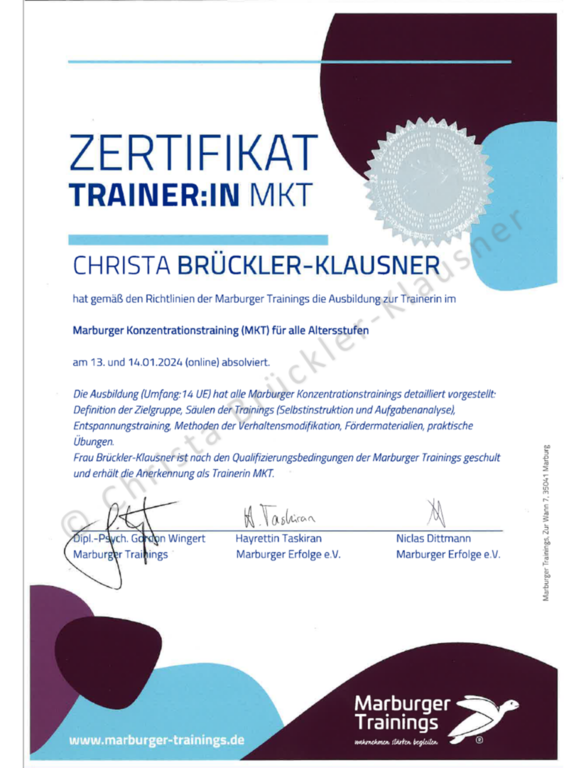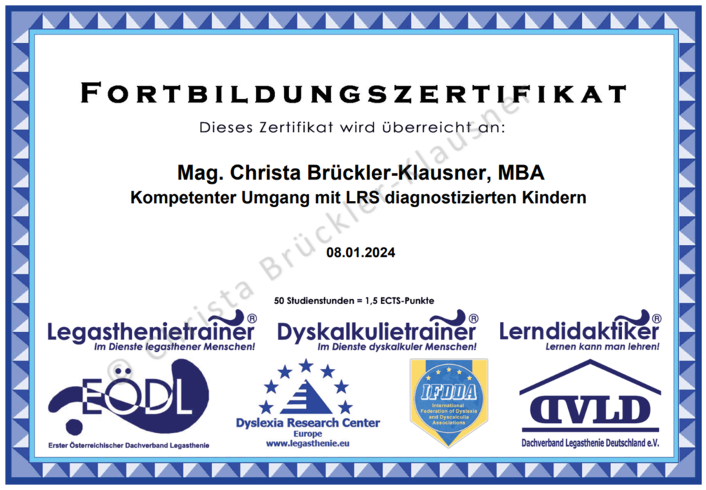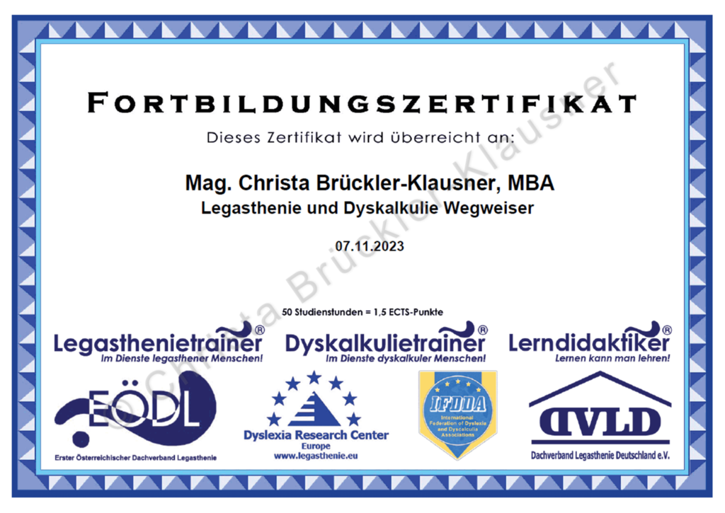 Zertifikate über Fort- und Weiterbildungen (Auswahl)